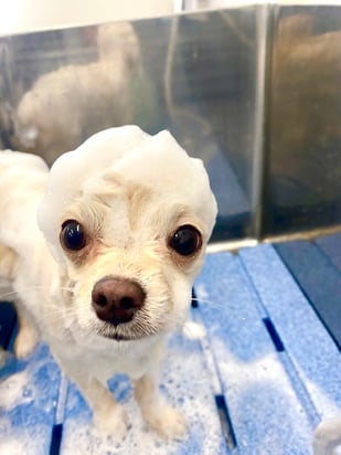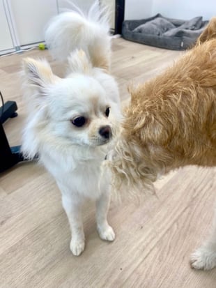 シャンプー後はお店の中の匂いを嗅いだり、リズとコミュニケーションを取ったりしてリラックスしながら飼い主さんを待っていました💕