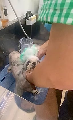 お顔カットや四肢のカットも負担が少ないように出来るだけ寝た状態でしました!