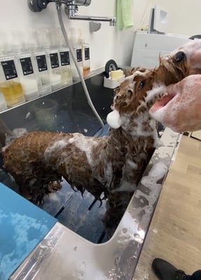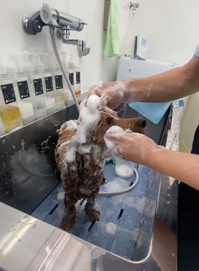 シャンプー中のアンバーちゃん気持ち良さそうですね✨