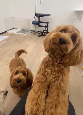 ブルーノ君をカットしていたらアンバーちゃんと看板犬リズが並んでこちらを見ていて可愛い〜ってなりました💕