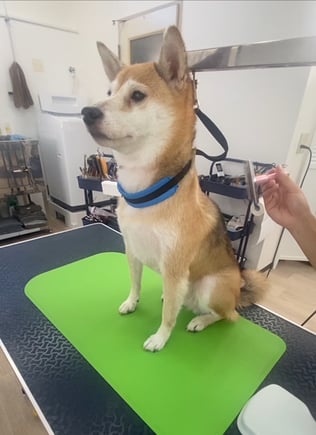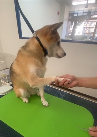 前足の回りをハサミで揃えていると腕に前足をかけてきたので嫌ってことって思っていると、あーおてねってなり🤣