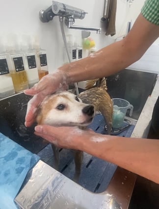 シャンプー中のあずきちゃん✨
